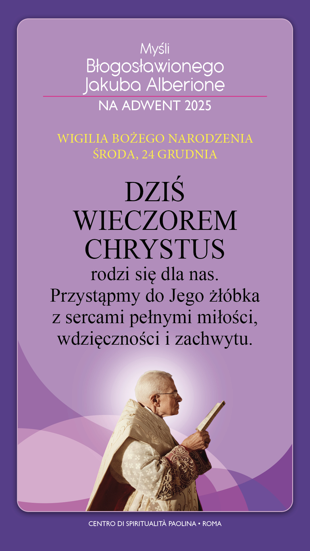 Wieczorem sprawowana jest Msza Święta wigilijna uroczystości Narodzenia Pańskiego (nie jest to jeszcze Pasterka, którą sprawuje się około północy). Jeśli chcesz zapoznać się z czytaniami tej Mszy kliknij TUTAJ.