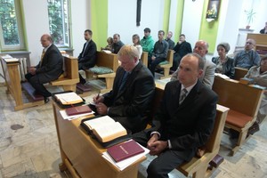 Nowicjusze ze swoim mistrzem (z lewej) i przełożonym regionalnym (z prawej)